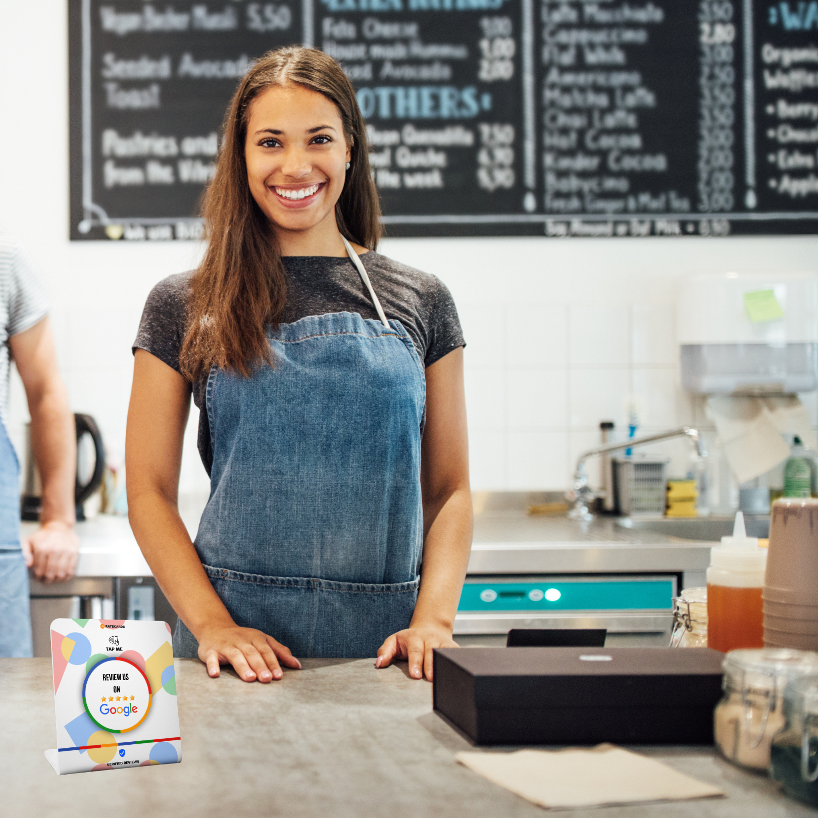 Simply place it on your counter and let customers tap to leave a review in seconds.